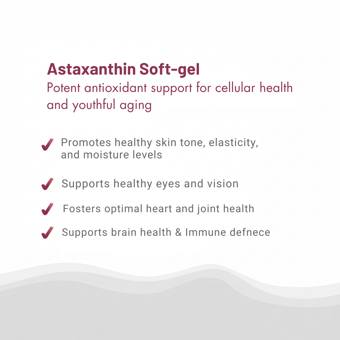 Astaxanthin is a powerful natural antioxidant from microalgae that supports skin, eye, joint, and overall cellular health.