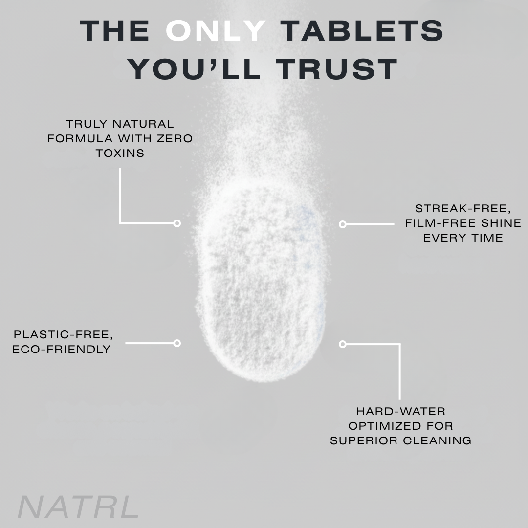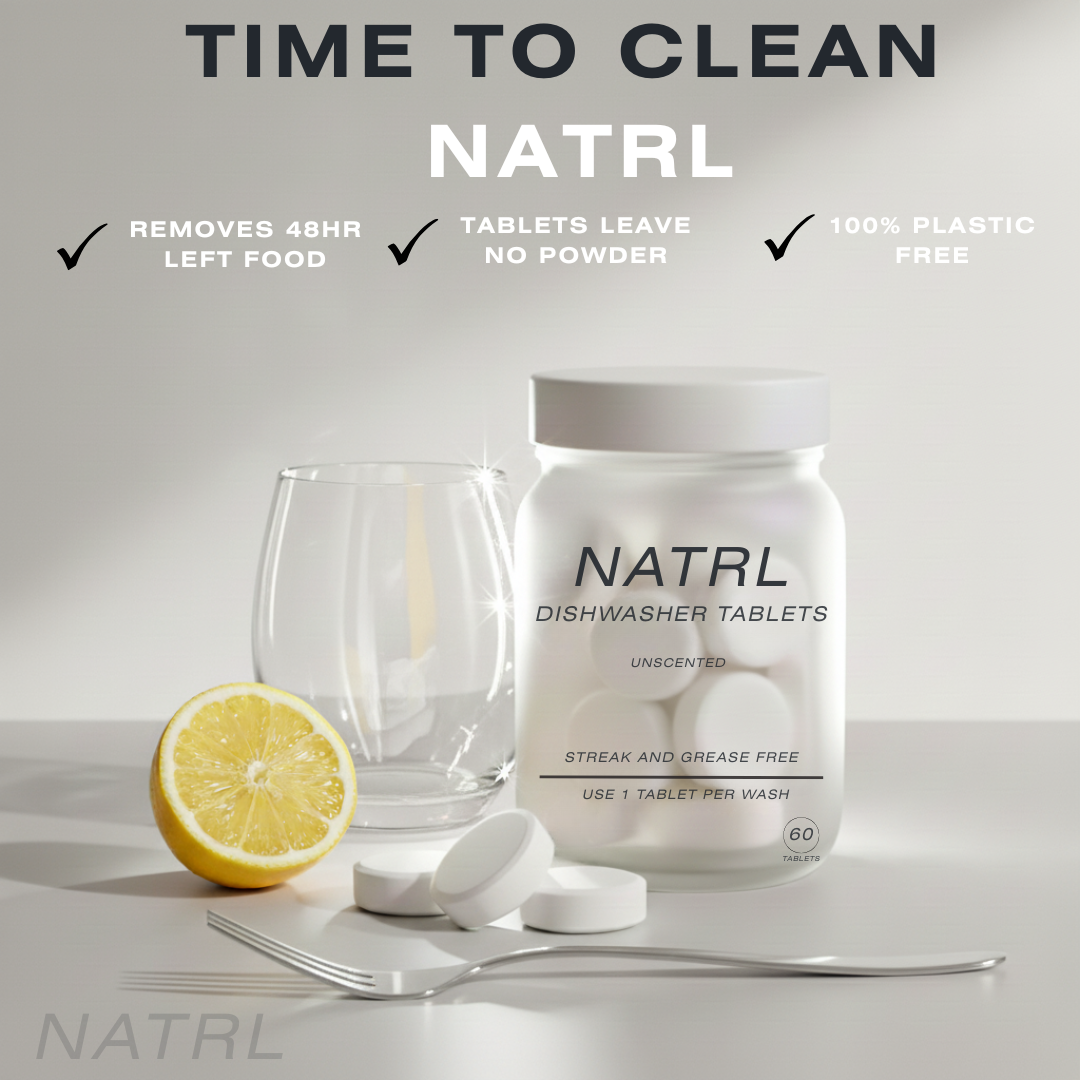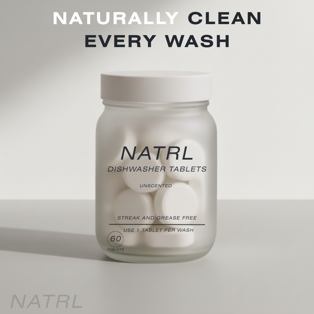 NATRL dishwasher tablets combine natural cleaning power with 100% plastic-free design to give you a safer, more effective wash. Tough on grease, gentle on your home.