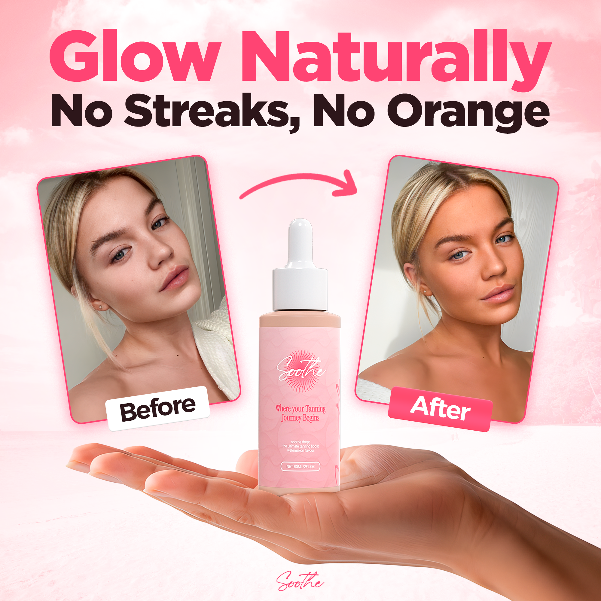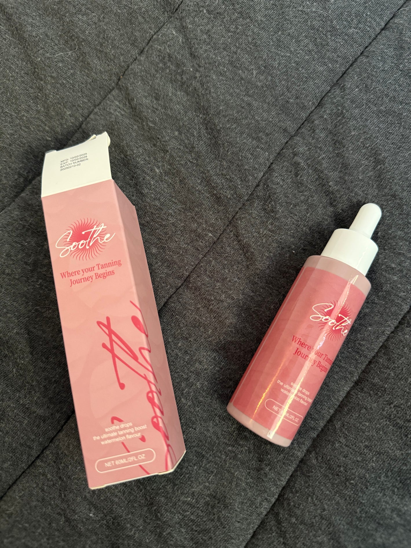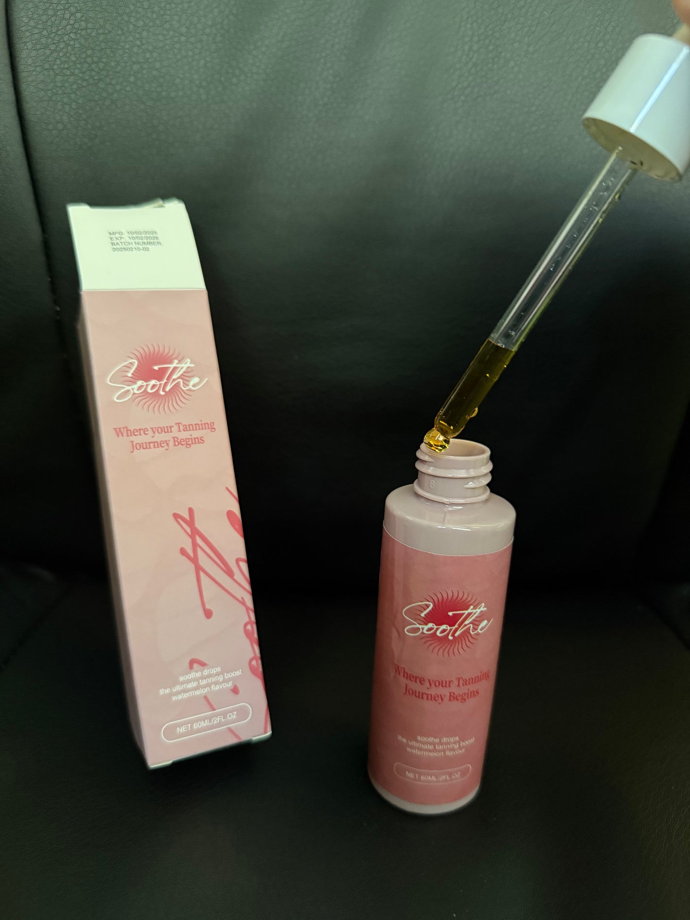 Soothe Tanning Drops are a drinkable sunless tanning solution designed to give you a natural, glowing tan without sun exposure! Simply add 1ml to water, drink, and let the formula work from within!