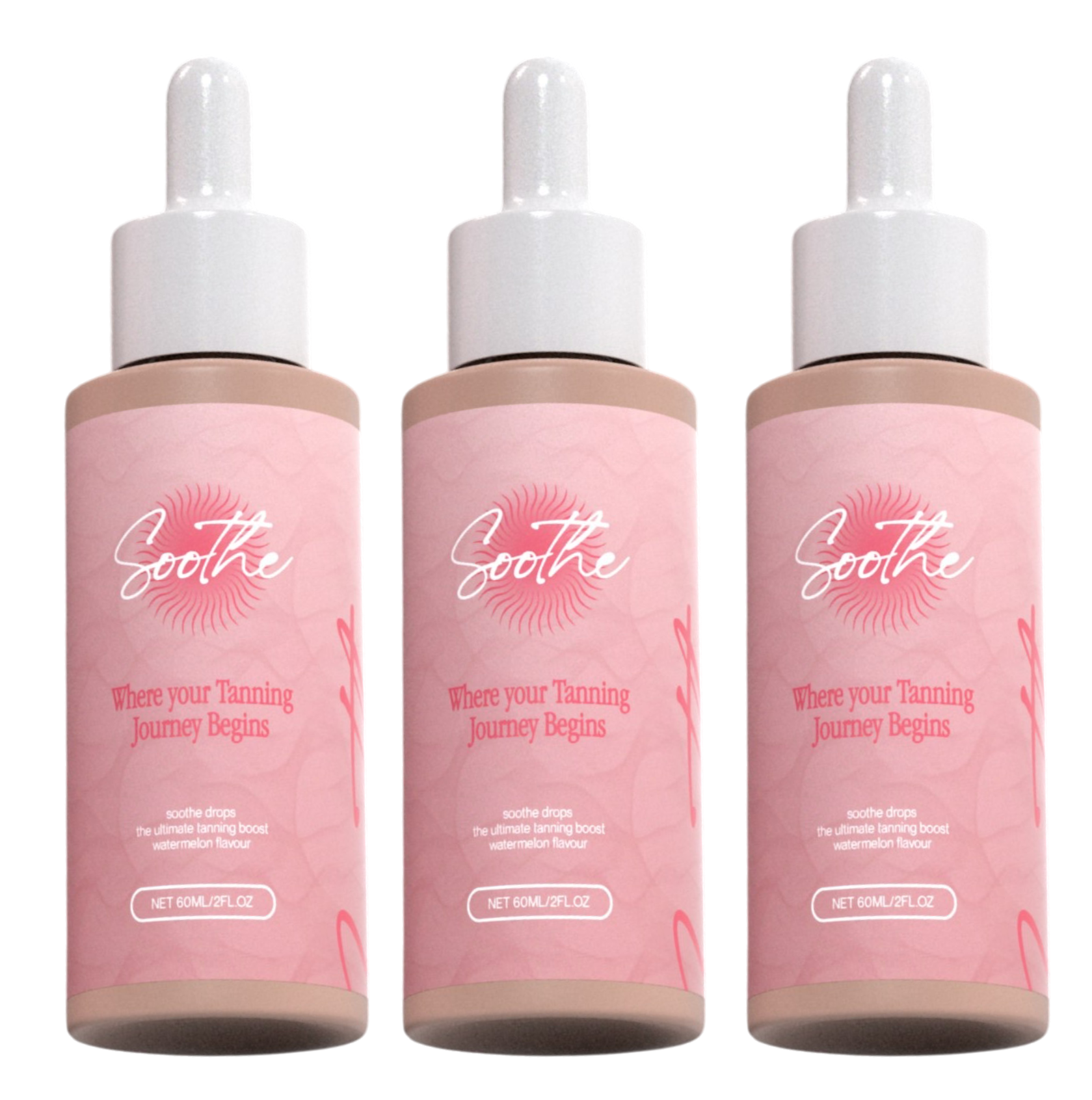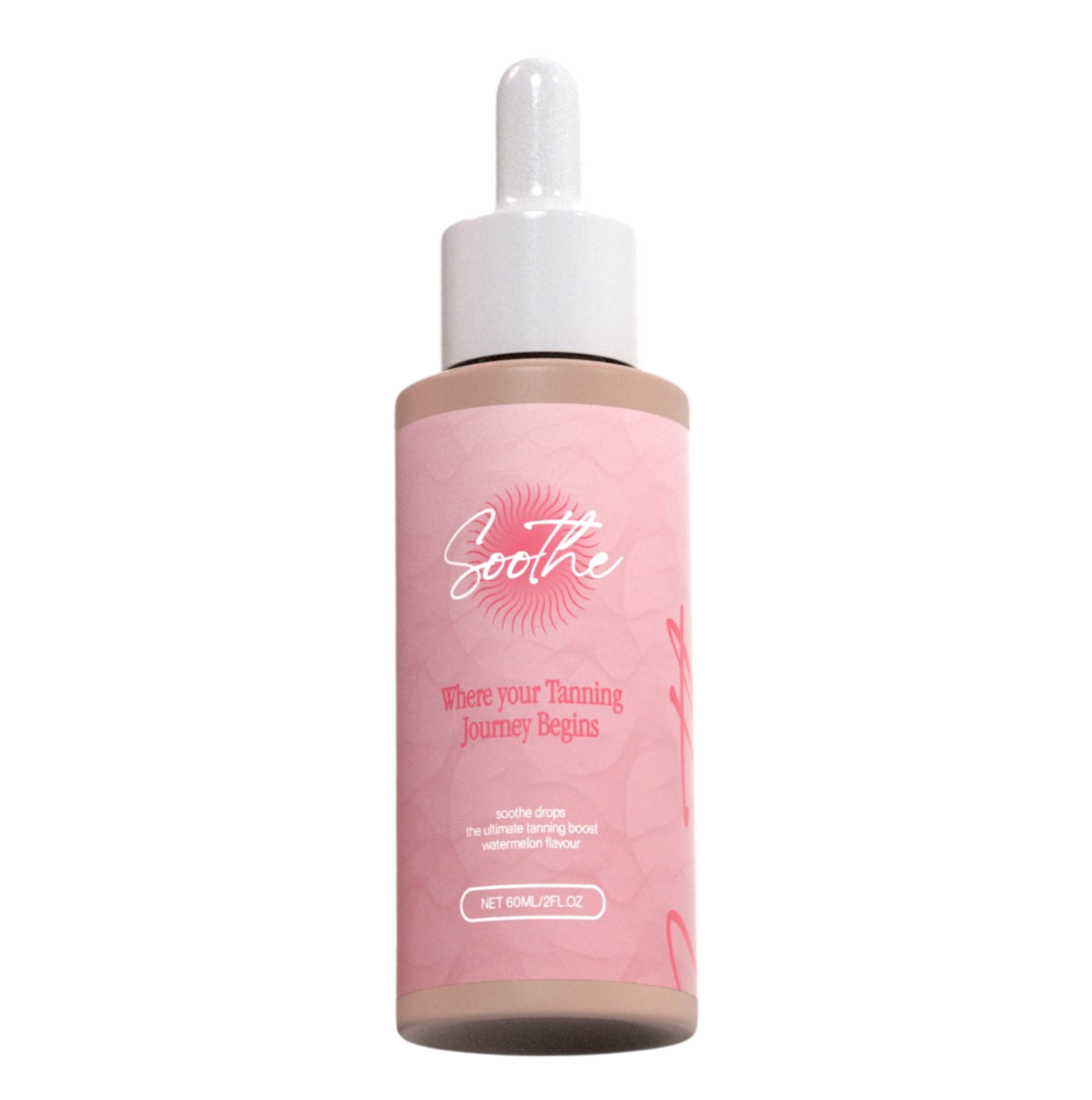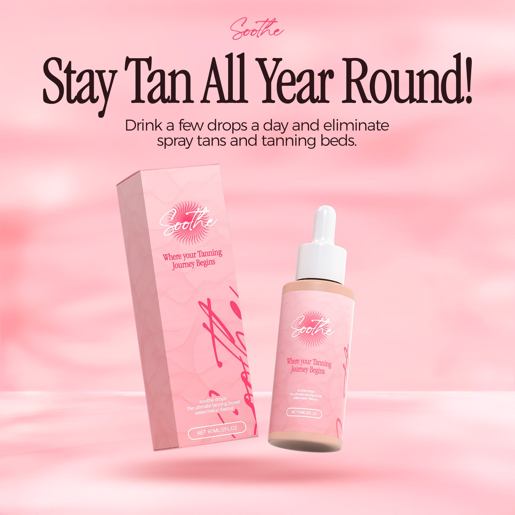 Soothe Tanning Drops are a drinkable sunless tanning solution designed to give you a natural, glowing tan without sun exposure! Simply add 1ml to water, drink, and let the formula work from within!